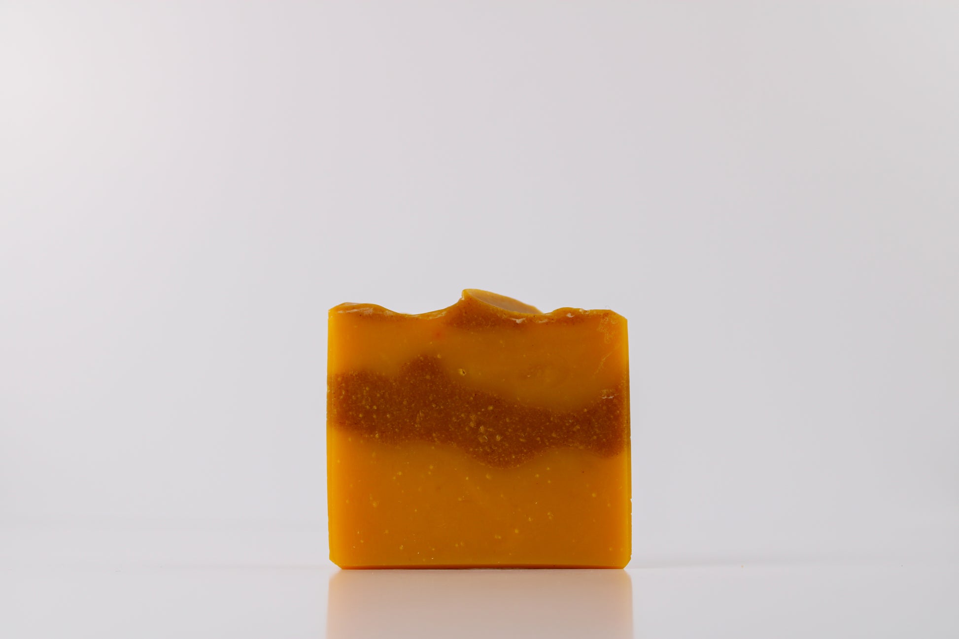 Wrap your skin in cozy warmth with this nourishing soap blend. Crafted with grass-fed tallow, olive, babassu and castor oils, it gently cleanses while essential oils of cinnamon, clove and orange awaken the senses. The beautiful golden color is achieved through using turmeric and annatto.